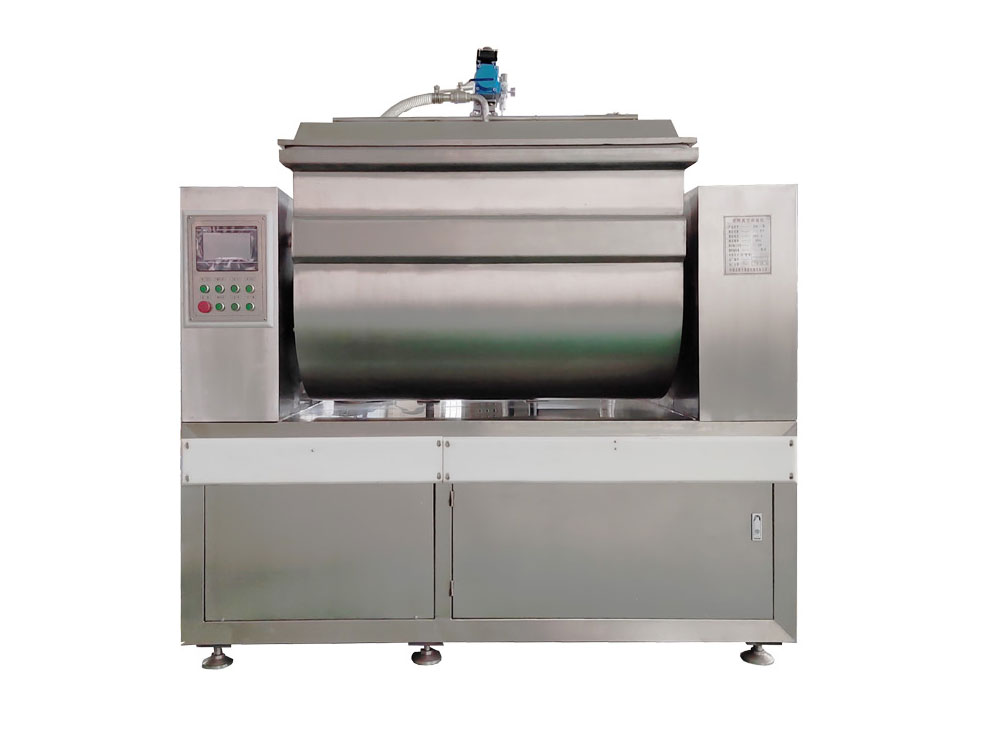 →臥式真空和面機(jī)系列  →型號(hào)50/75/100/150/200/300型  →功能  主要用來和制餃子皮、餛飩皮、鮮食面、水煮面、掛面等,若更換攪拌器,可適用于速凍行業(yè)的各種面食制品的加工?!  厣 ?、配備智能觸控顯示屏,參數(shù)自由設(shè)定,可手動(dòng)攪拌、可一鍵攪拌。并可根據(jù)工藝設(shè)定和面時(shí)間和真空度。  2、設(shè)備由PLC控制,可實(shí)現(xiàn)自動(dòng)起蓋、自動(dòng)計(jì)量加水、自動(dòng)翻斗、自動(dòng)進(jìn)粉、抽真空和面(拌粉)、自動(dòng)排面功能?! ?、獨(dú)特的密封結(jié)構(gòu),有效防止面團(tuán)受到污染,進(jìn)一步提高食品安全?! ?、和面過程在真空負(fù)壓下進(jìn)行,使面粉中的蛋白質(zhì)在短時(shí)間、充分的吸收水分,形成面筋網(wǎng)絡(luò),從而使面團(tuán)外表光滑、內(nèi)部結(jié)構(gòu)均勻,透明度高、口感好?! ?、可定制面斗冷卻系統(tǒng),使成品面團(tuán)溫度恒定,確保批量生產(chǎn)的產(chǎn)品質(zhì)量穩(wěn)定?! ?、設(shè)備主體采用不銹鋼制造,符合現(xiàn)行有關(guān)食品衛(wèi)生標(biāo)準(zhǔn)?!  饕夹g(shù)參數(shù)產(chǎn)品型號(hào)額定容量(kg)攪拌轉(zhuǎn)速(rpm)主電機(jī)(kW)副電(kW)外形尺寸(長(zhǎng)×寬×高)ZHW  50型50板式40 攪棒44/887.51.11470×932×1483ZHW  75型75板式40 攪棒44/88111.851440×890×1655ZHW 100型100板式40 攪棒44/88111.851440×890×1794ZHW 150型150板式40 攪棒44/88221.851764×1070×1815ZHW 200型200板式40 攪棒44/88221.851964×1070×1815ZHW 300型300板式40 攪棒44/883432074×1170×2022板式攪拌器滾杠-真空油條包子狼牙棒攪拌器