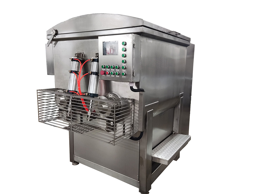 →雙軸雙速拌餡機(jī)  →型號 150/350/600/1200升  →功能  適合各種餃子、包子等肉類及蔬菜類餡料的攪拌  →特色  1、采用平行雙軸結(jié)構(gòu),螺旋板式槳葉,物料在料斗中翻動的同時作圓周運(yùn)動,同時完成軸向回流,使各種物料攪拌的更加均勻。  2、采用雙速雙動力,根據(jù)所拌餡的種類及工藝選擇不同的轉(zhuǎn)速和不同的運(yùn)轉(zhuǎn)方式進(jìn)行攪拌。  3、上蓋后端設(shè)有行程開關(guān),根據(jù)上蓋的開合,自動切斷或接通電源,操作方便,安全可靠?! ?、整機(jī)采用不銹鋼制造,易于清洗,美觀大方。符合國家衛(wèi)生標(biāo)準(zhǔn)。  5、可根據(jù)客戶的需求定制自動進(jìn)水,自動起蓋,自動排料等功能。  →主要技術(shù)參數(shù)產(chǎn)品型號面斗容積(L)額定功率(kw)攪拌轉(zhuǎn)速(rpm)額定電壓(v)外形尺寸(長×寬×高)SZJ   150升1501.5/2.442/84380920×665×990SZJ   350升3502.2/3.342/843801180×880×1390SZJ   600升6003.0/4.542/843801430×1080×1590SZJ  1200升12005.0/7.542/843801600×1530×2750